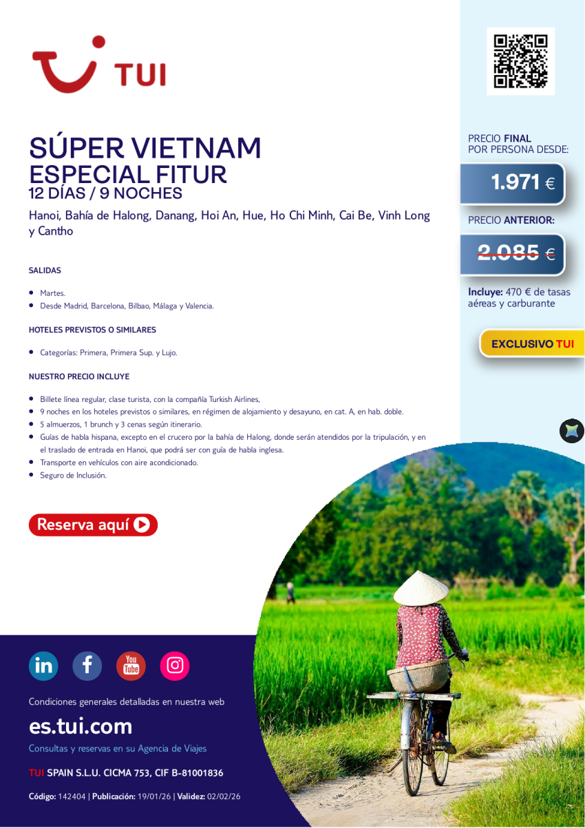 Especial Fitur. Súper Vietnam. 12 días / 9 noches. Salida martes desde varios orígenes desde 1.971 €
