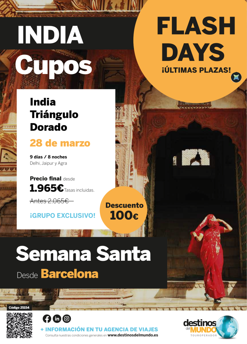 🇮🇳♥️SEMANA SANTA India triángulo dorado 9 d / 8 n origen: Barcelona Salida: 28 de marzo 2026 desde 1.965€♥️